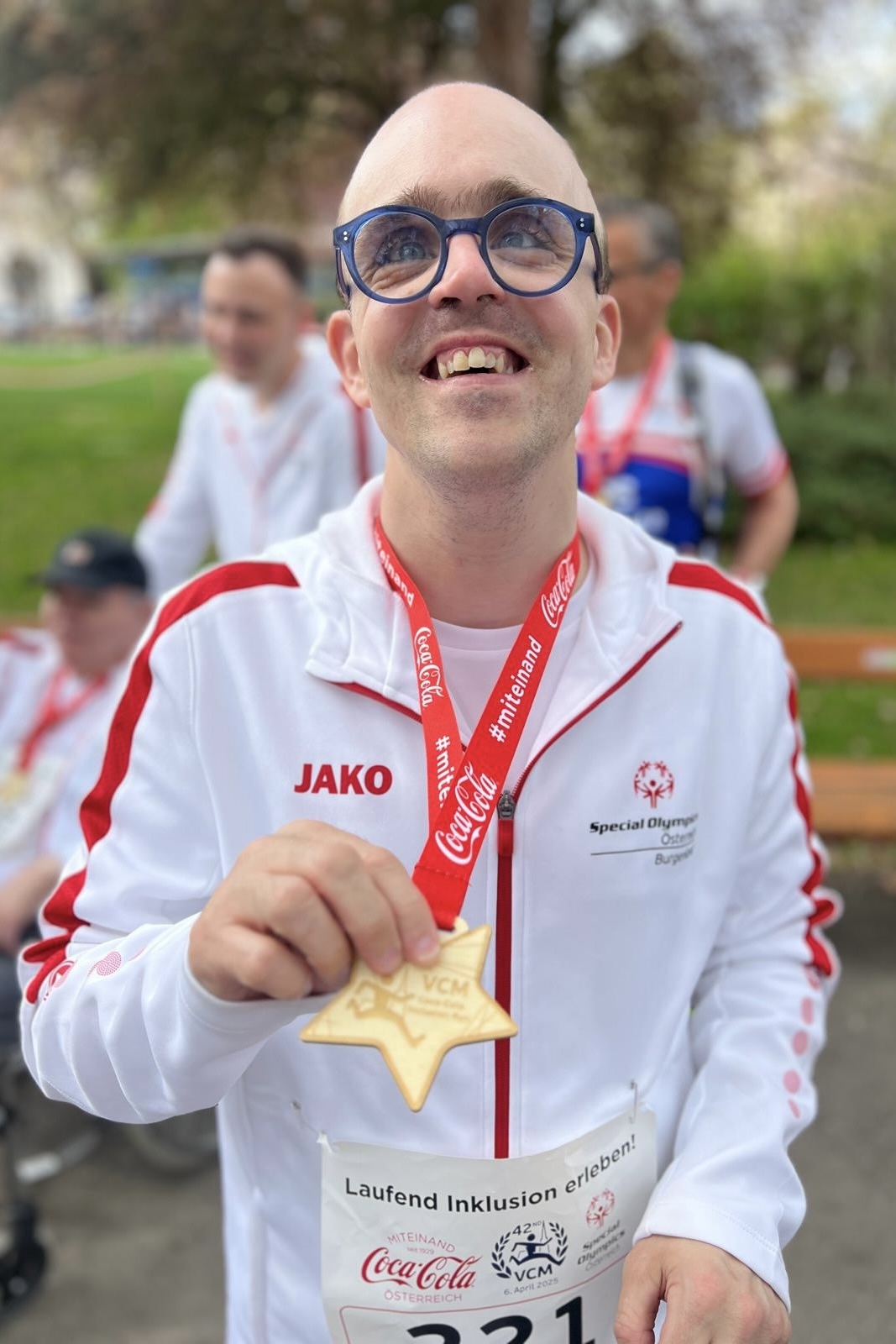 Am Start wartete eine besondere Überraschung: Die österreichische Außenministerin Beate Meinl-Reisinger begrüßte die Teilnehmer:innen persönlich und ging zusammen mit ihnen zum Start. Gemeinsam mit ihren Betreuer:innen inklusive Hausleiter und Lauftrainer liefen die Klient:innen los, begleitet vom Applaus und Jubel zahlreicher Zuschauer:innen. Und tatsächlich: Alle erreichten das Ziel, stolz und glücklich. „Ich habe mich so gefreut, dass wir alle gemeinsam gelaufen sind – das hat sich richtig gut angefühlt!“, erzählt Klient Dominic Bauer mit einem Lächeln, das Bände spricht. Am Ende durfte jede:r eine glänzende Medaille entgegennehmen – und das Strahlen in den Gesichtern war der schönste Beweis dafür, wie viel dieser Tag allen bedeutet hat.