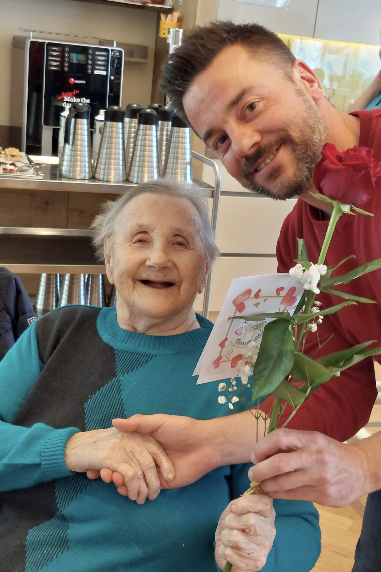 Die vielen liebevollen Details machten das Fest zu etwas ganz Besonderem. So hatte Bewohnerin Regina Kerschbaum, passionierte Strickliebhaberin, für jede Mutter aus ihrem Wohnbereich ein kleines rotes Herz aus Wolle angefertigt. Dieses wurde gemeinsam mit einer handgeschriebenen Karte und einer roten Rose von Franz Kiss, Hausleiter des SeneCura Sozialzentrums Frauenkirchen, überreicht – ein stiller, aber sehr emotionaler Höhepunkt des Tages. „Unsere Bewohnerinnen und ihre Familien liegen uns sehr am Herzen. Es war wunderschön zu sehen, wie viel Freude dieser kleine, selbstgemachte Gruß bereitet hat“, so Franz Kiss. „Solche Feste zeigen, wie wichtig Gemeinschaft ist – und wie viel Liebe in kleinen Gesten stecken kann.“ Die Muttertagsfeier in Frauenkirchen war mehr als ein Nachmittag – sie war ein Ausdruck von Zusammenhalt, von Wertschätzung und von der tiefen Verbindung zwischen den Generationen.