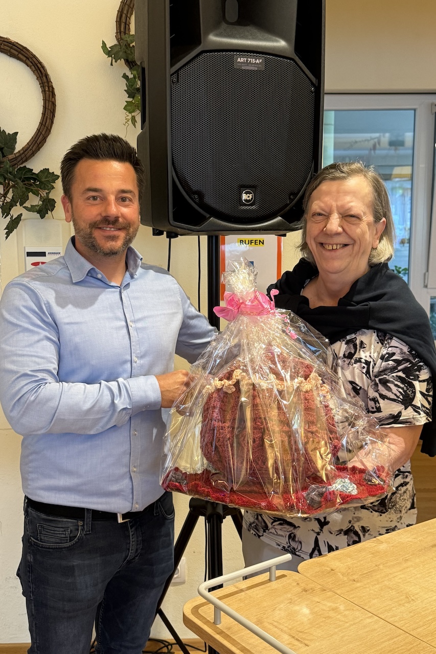 Beim diesjährigen Sommerfest im SeneCura Sozialzentrum Frauenkirchen stand heuer ein besonderer Ehrungsmoment auf dem Programm: Bewohnerin Eugenie Klampfer wurde für ihren Sieg beim burgenlandweiten SeneCura-Vogelhaus-Wettbewerb ausgezeichnet. Im Frühjahr hatte die Kreativgruppe aus dem Behindertenbereich allen SeneCura Häusern in Österreich liebevoll gestaltete Bausätze für Vogelhäuser zur Verfügung gestellt. Die Bewohner:innen der Häuser konnten diese individuell zusammensetzen und kreativ gestalten – mit großem Erfolg: Das fantasievoll dekorierte Haus von Eugenie Klampfer überzeugte die Jury und wurde zum Landessieger gekürt. Im Namen aller Bewohner:innen überreichte ihre Mitbewohnerin Regina Kerschbaum der sichtlich gerührten Preisträgerin eine selbst gestrickte Puppe als besonderes Zeichen der Wertschätzung. Die Bewohnerin Eugenie Klampfer bedankte sich herzlich: „Ich freue mich sehr, dass ich gewonnen habe! Das Vogelhaus zu gestalten war für mich einfach eine Freude. Und dann noch so geehrt zu werden – das ist wirklich schön!“